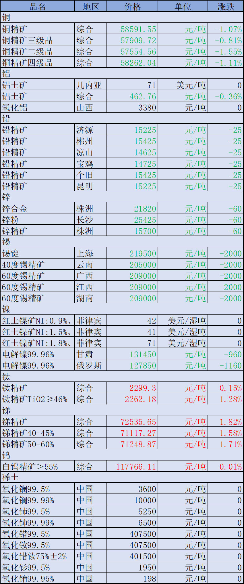 1月30日有色金屬價(jià)格